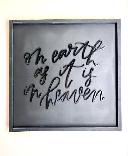 handcut 'on earth as it is in heaven' sign